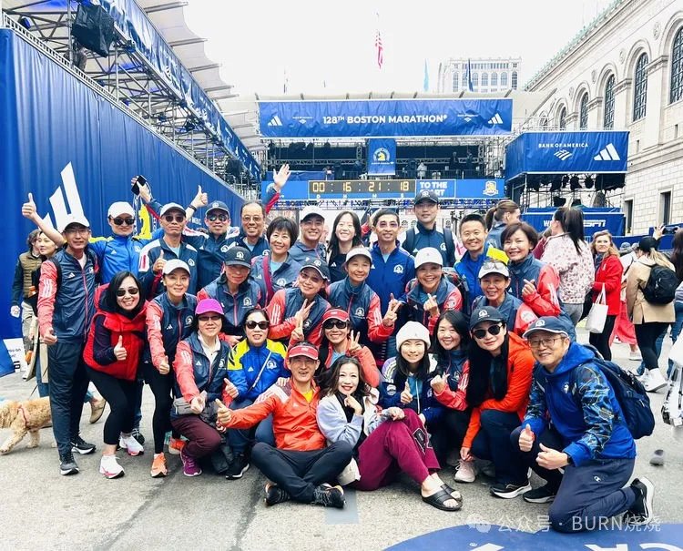 波士顿马拉松,是每一个马拉松跑者心中最高的殿堂和圣地。Burn ,大本营在北加的跑步社团,跑者如云,怎么可能会缺堂?年年去朝圣的烧烧们,前仆后继,踊跃东去,恰似一江东水向东流。今年当然也不例外。只是咱烧烧们在这个自由的国度里自由惯了,在波士顿这片圣地上仍然信奉自由的原则,没有组织太多的大型活动,所以咱只能上一张不完全的全家福,可别以为我们来得烧烧就只有这几十位呀,绝对有三位数的。
